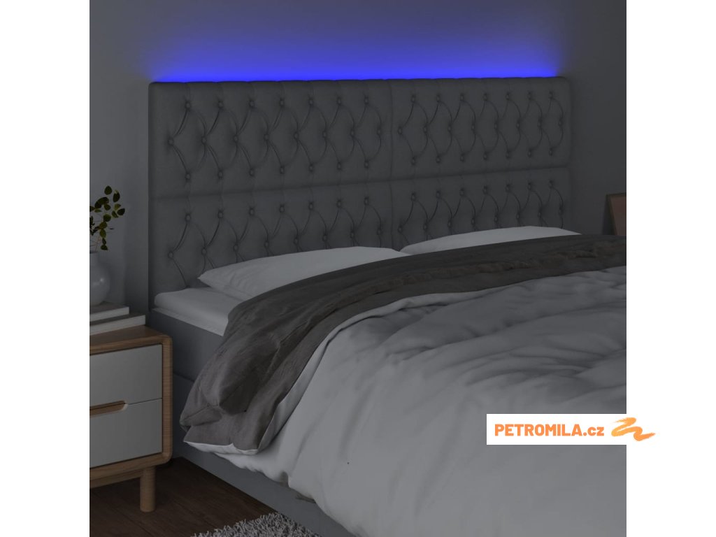 Čelo postele s LED světle šedé 200x7x118/128 cm textil