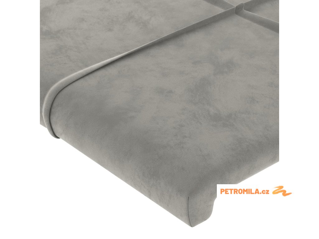 Čelo postele s LED světle šedé 203 x 16 x 118/128 cm samet