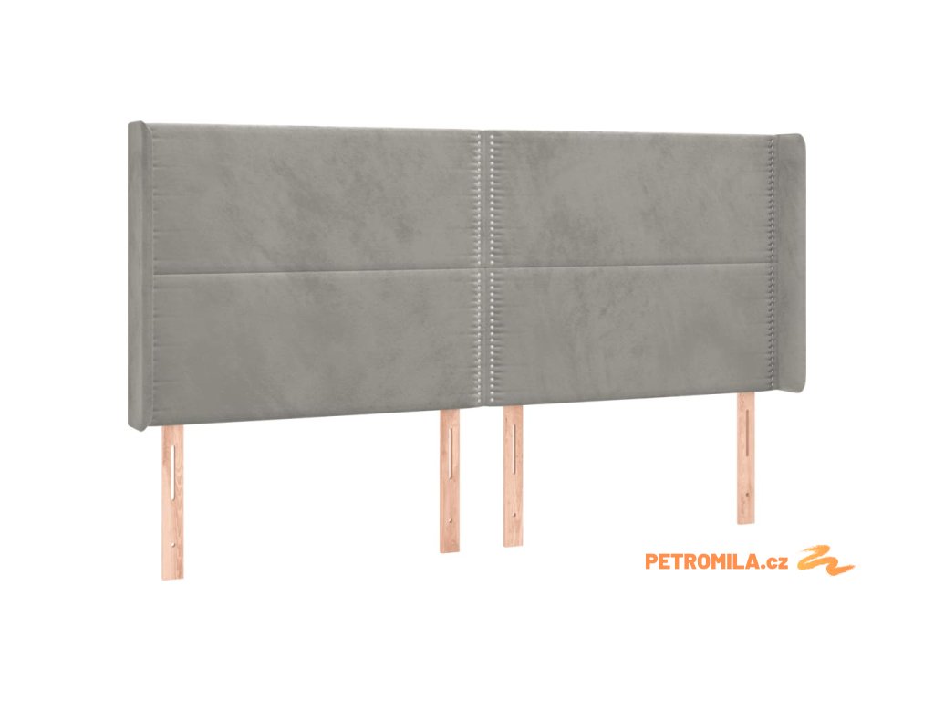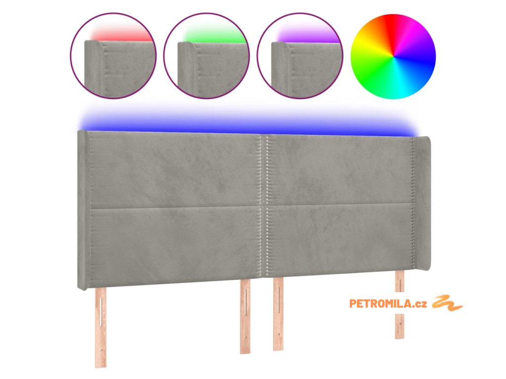 Čelo postele s LED světle šedé 203 x 16 x 118/128 cm samet