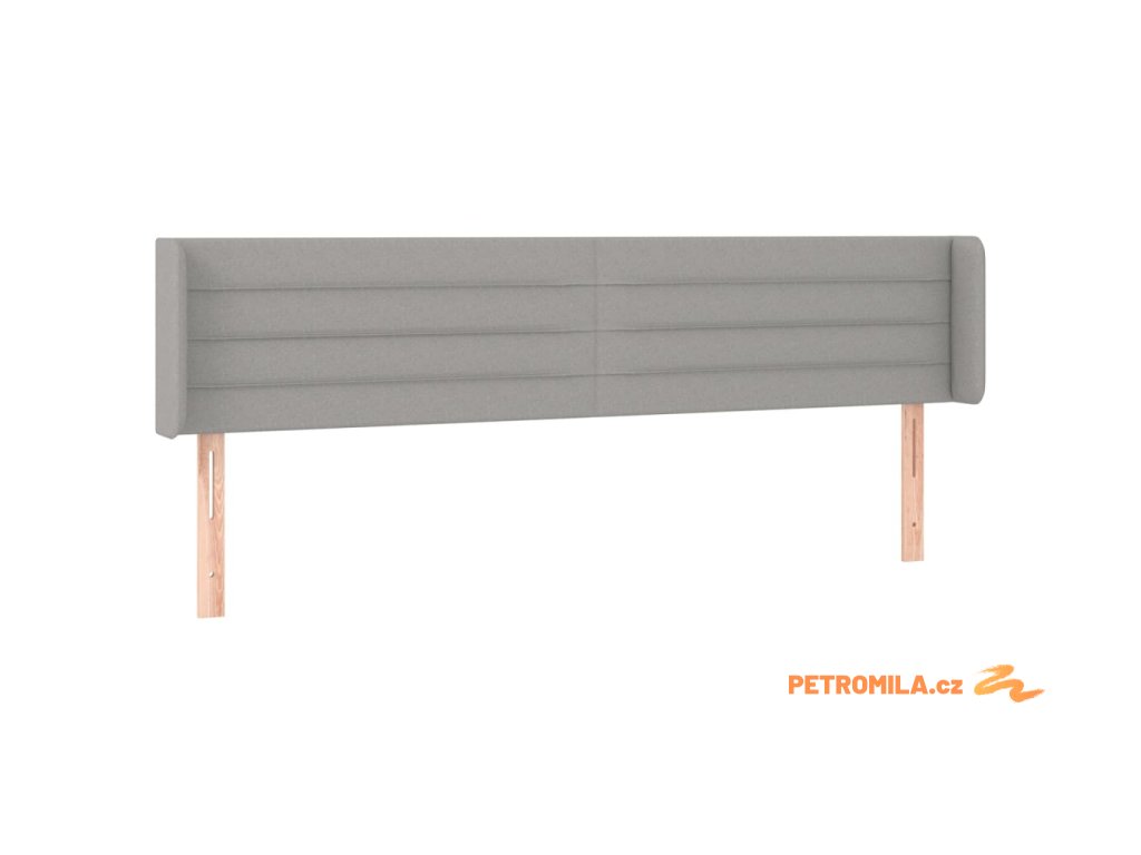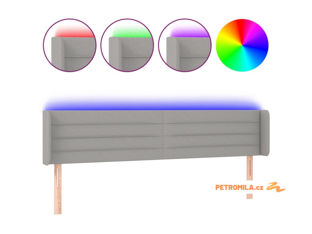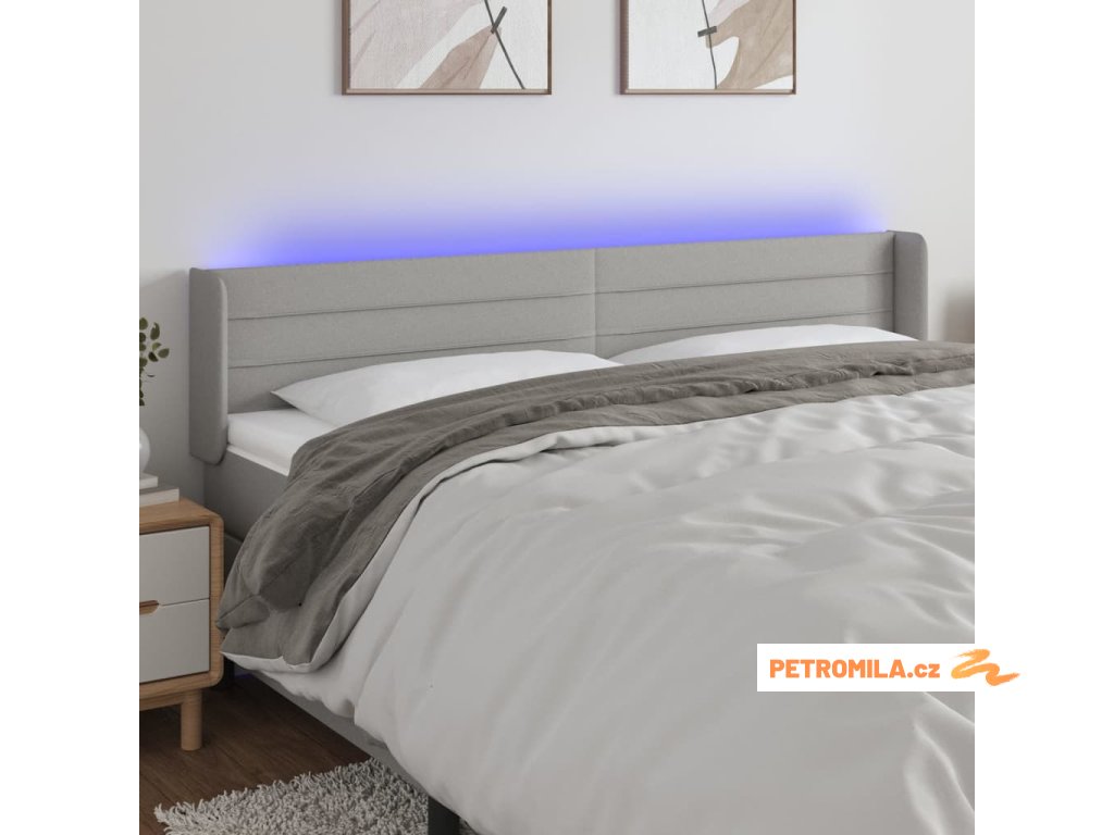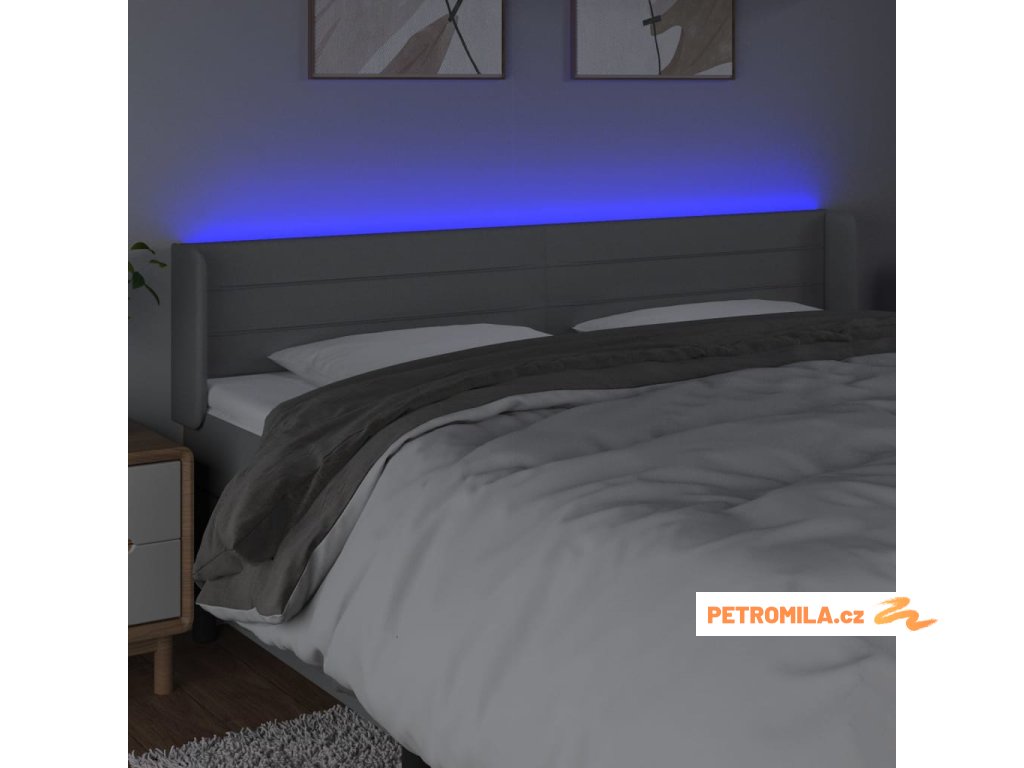 Čelo postele s LED světle šedé 203 x 16 x 78/88 cm textil