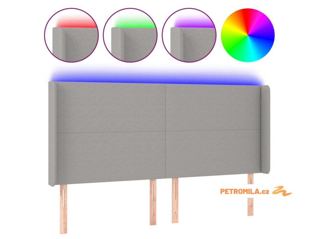 Čelo postele s LED světle šedé 203x16x118/128 cm textil