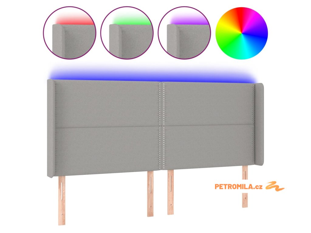 Čelo postele s LED světle šedé 203x16x118/128 cm textil