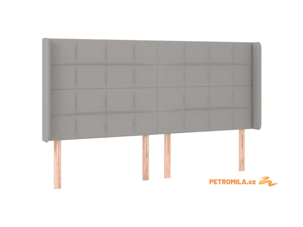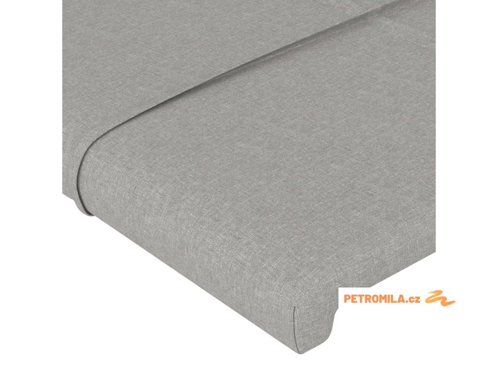Čelo postele s LED světle šedé 203x16x118/128 cm textil