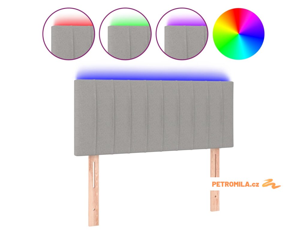 Čelo postele s LED světle šedé 80 x 5 x 78/88 cm textil