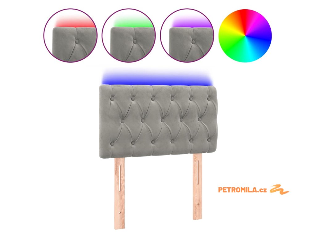 Čelo postele s LED světle šedé 80 x 7 x 78/88 cm samet
