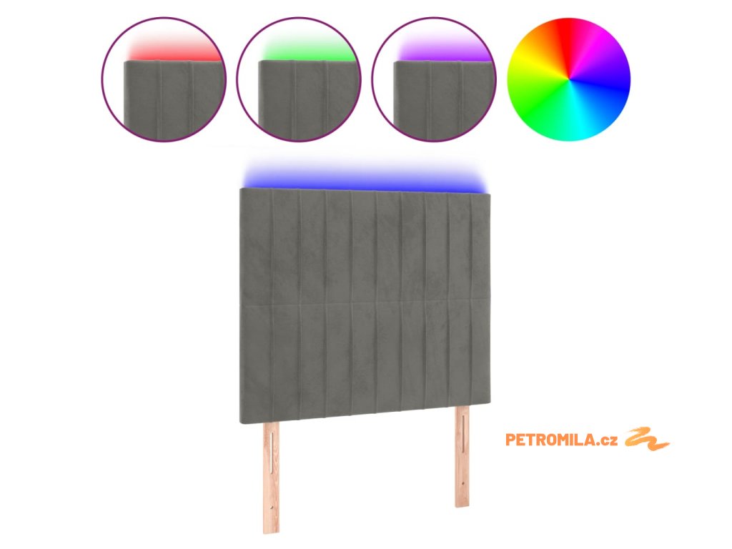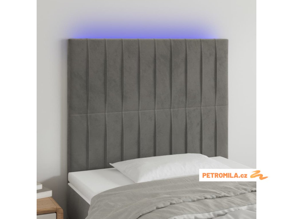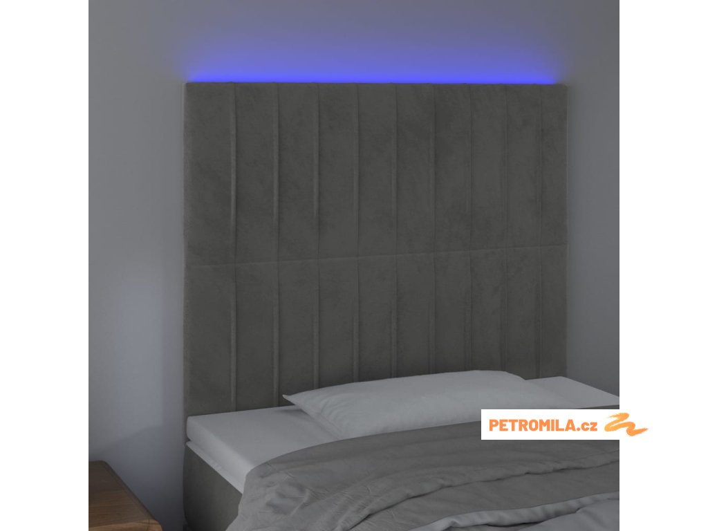 Čelo postele s LED světle šedé 80x5x118/128 cm samet
