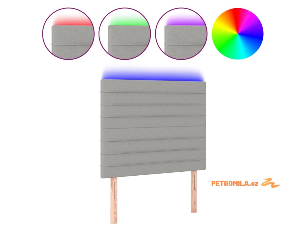 Čelo postele s LED světle šedé 80x5x118/128 cm textil