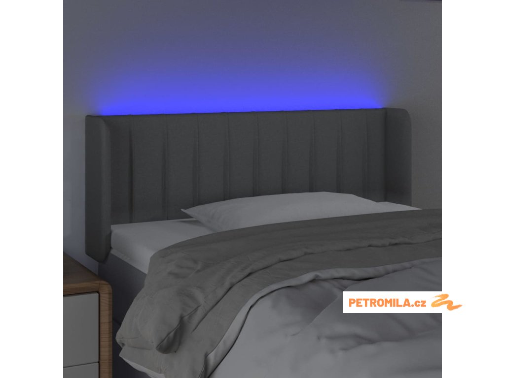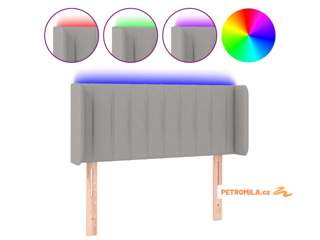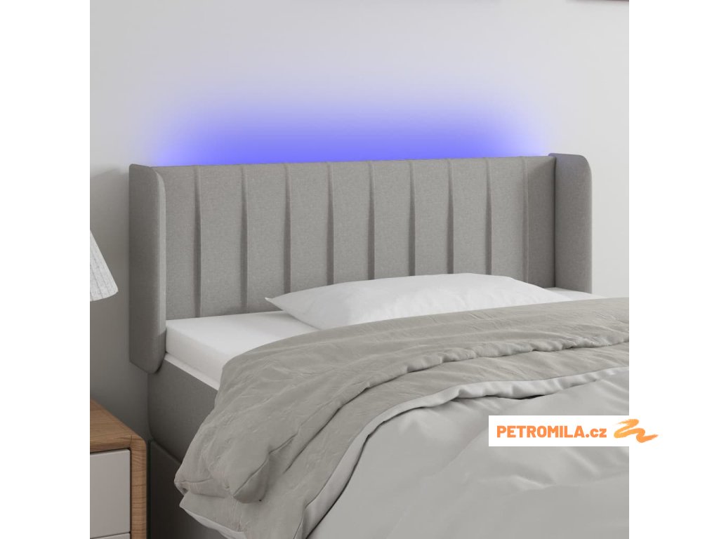 Čelo postele s LED světle šedé 83 x 16 x 78/88 cm textil