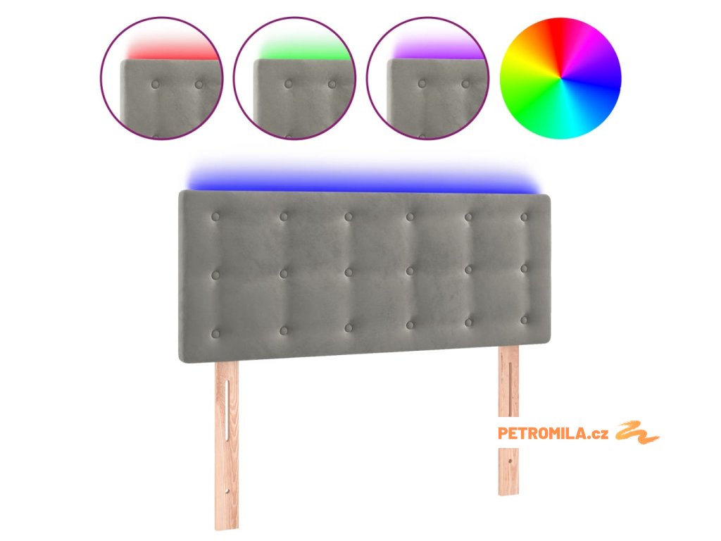 Čelo postele s LED světle šedé 90x5x78/88 cm samet