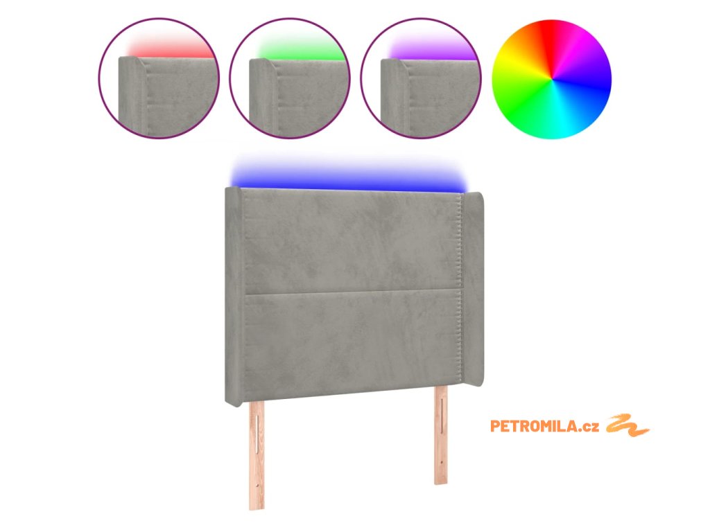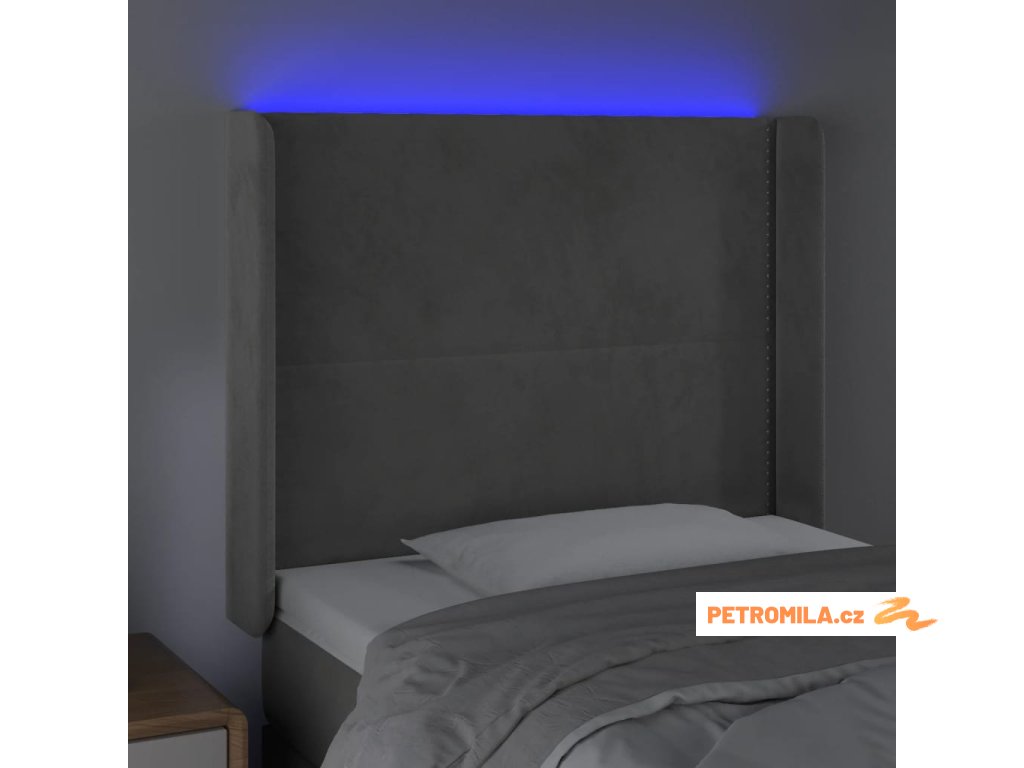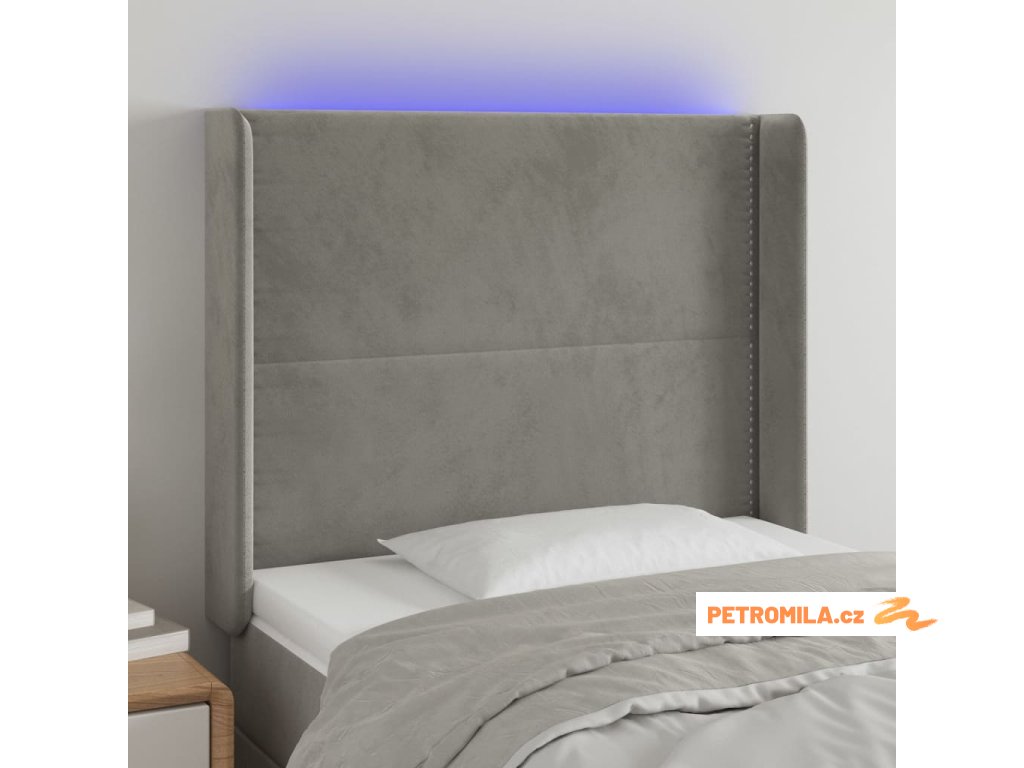 Čelo postele s LED světle šedé 93x16x118/128 cm samet