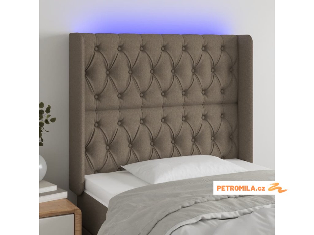 Čelo postele s LED taupe 103 x 16 x 118/128 cm textil