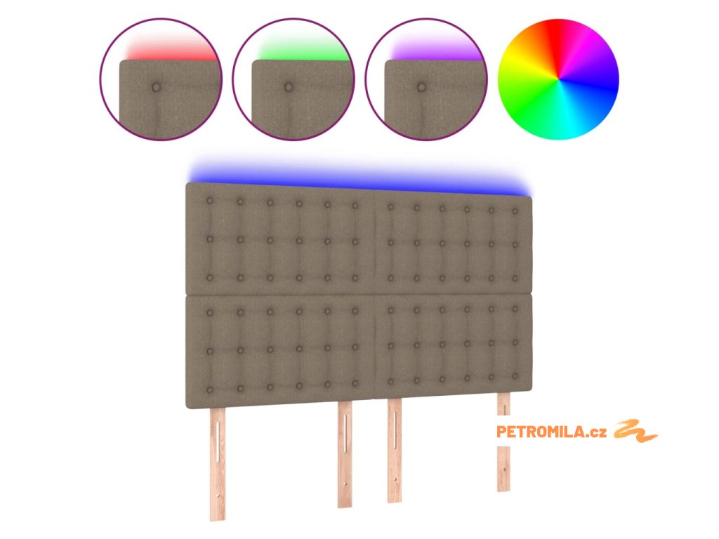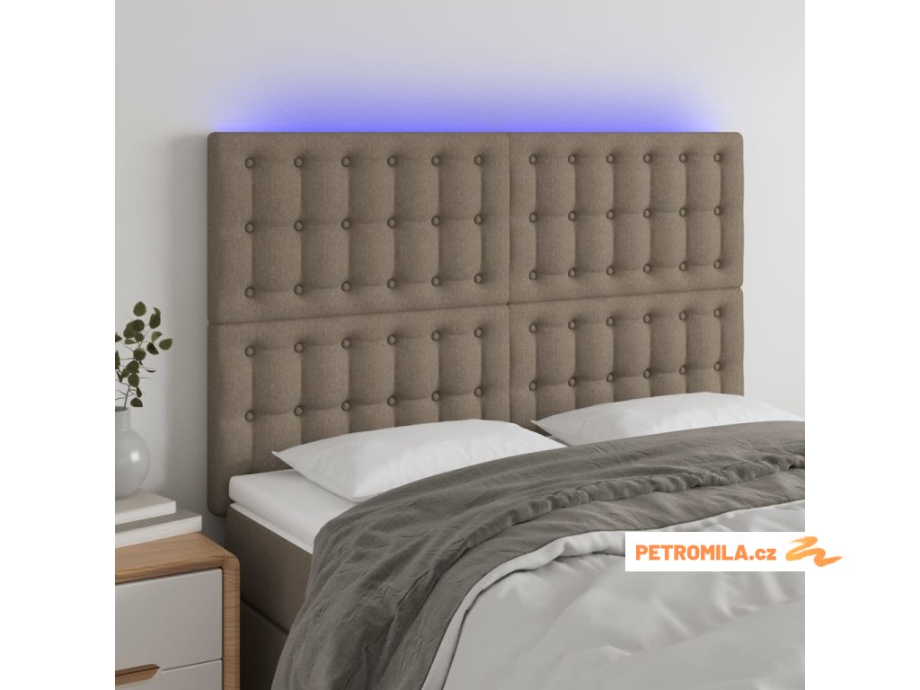 Čelo postele s LED taupe 144x5x118/128 cm textil