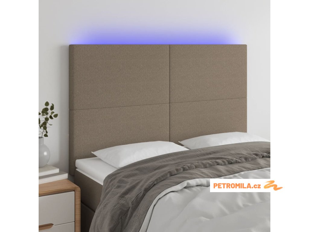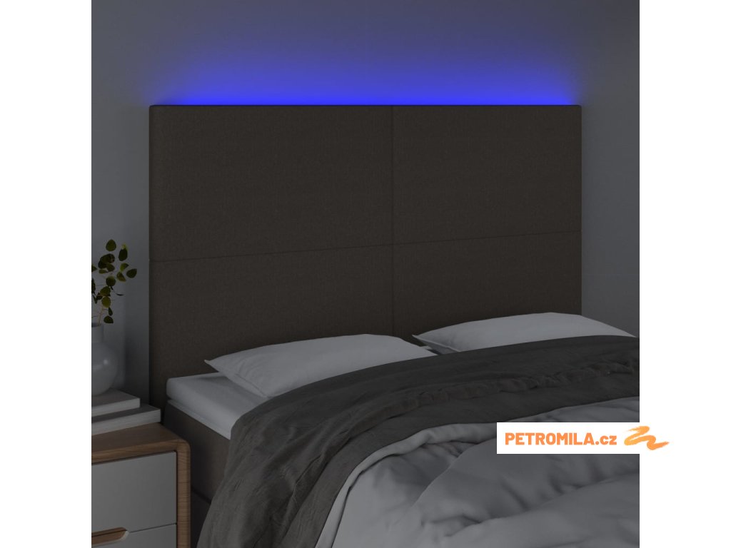 Čelo postele s LED taupe 144x5x118/128 cm textil