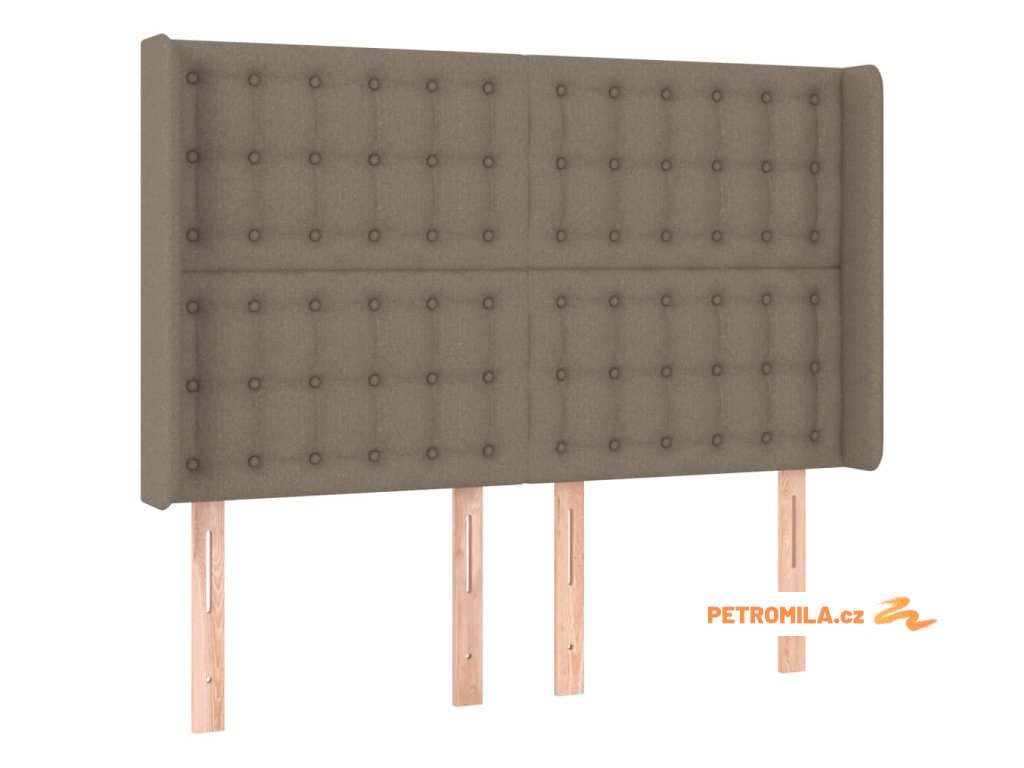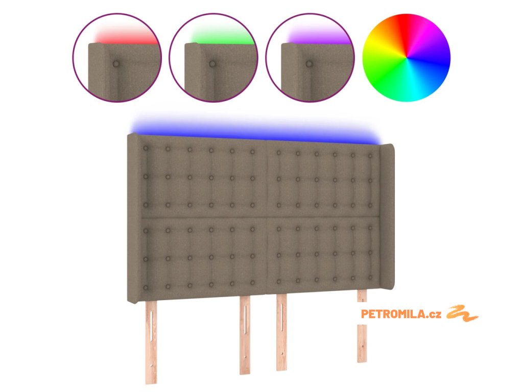 Čelo postele s LED taupe 147 x 16 x 118/128 cm textil