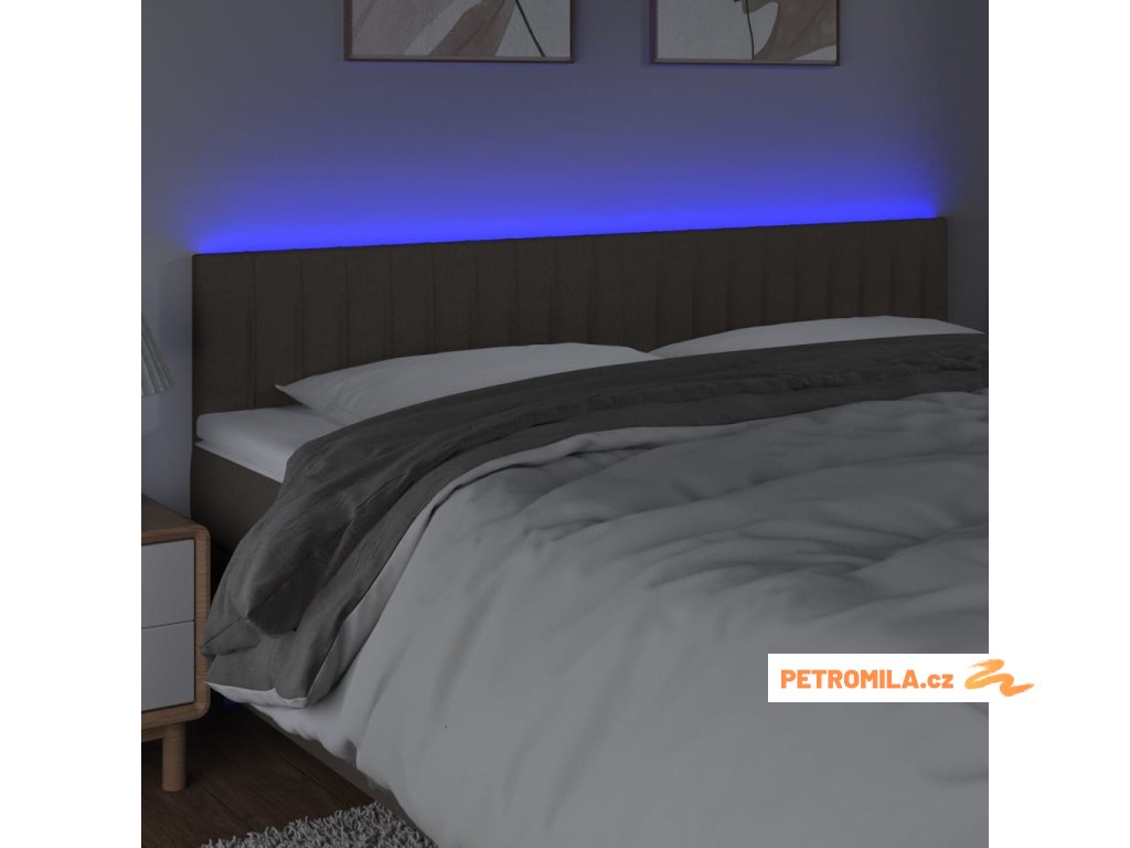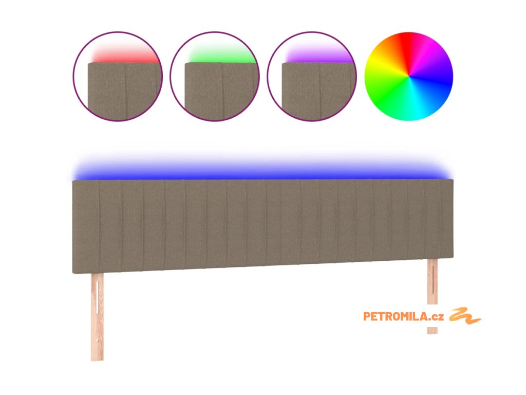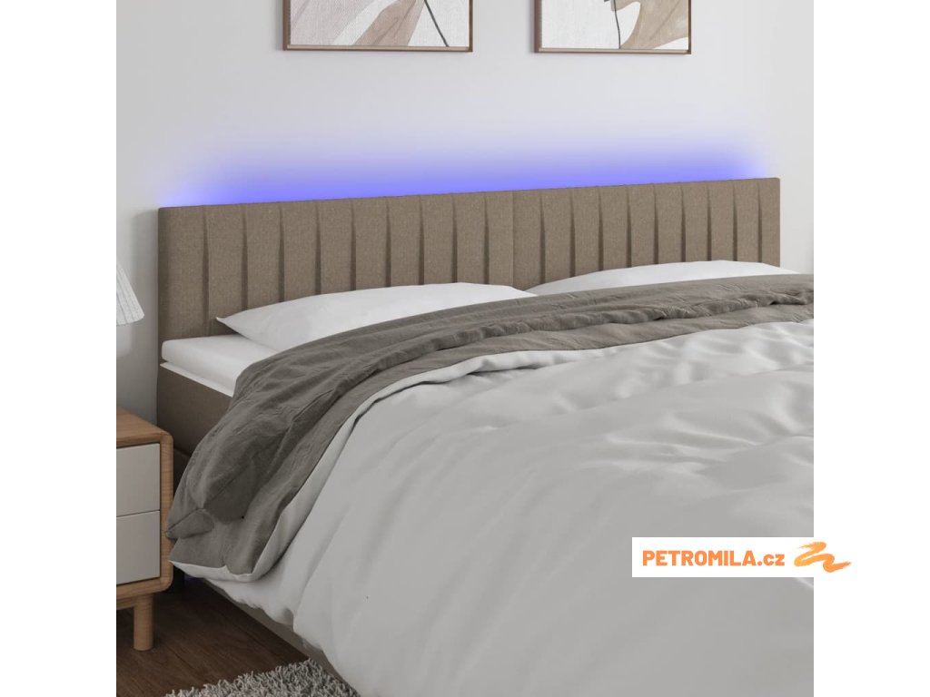 Čelo postele s LED taupe 180x5x78/88 cm textil