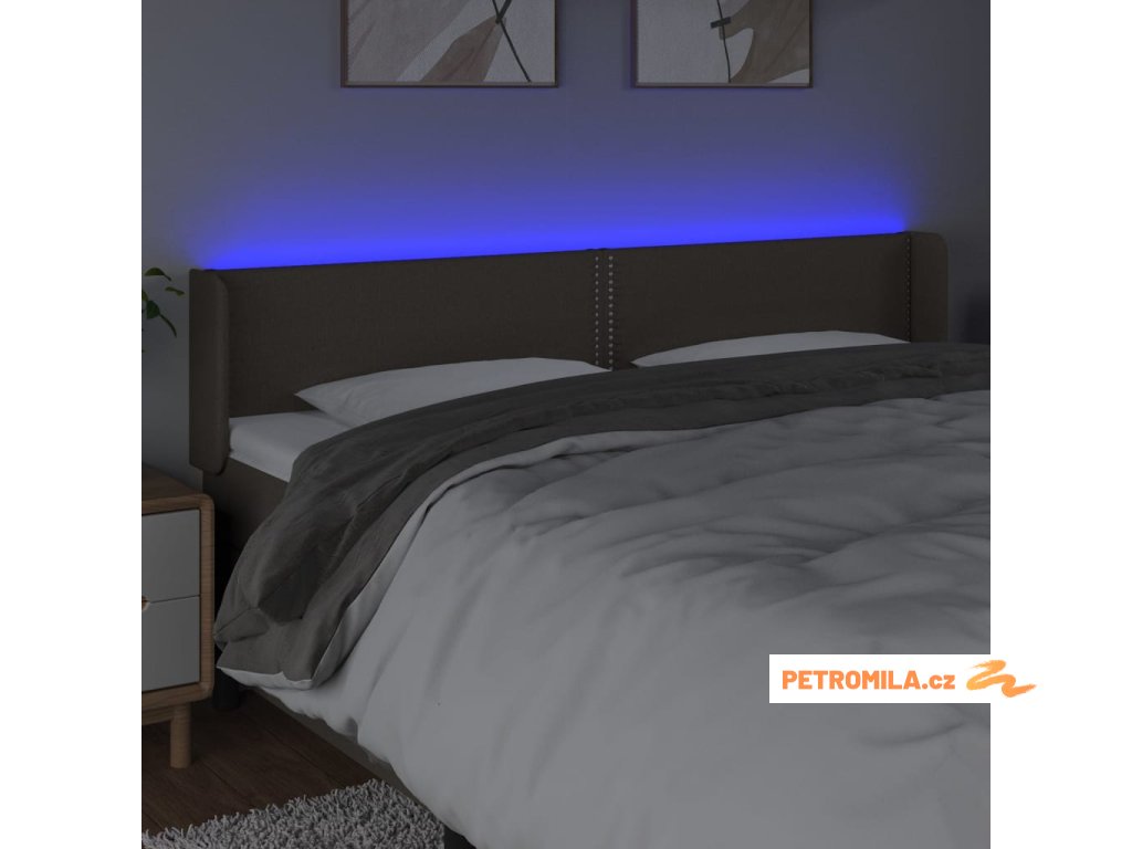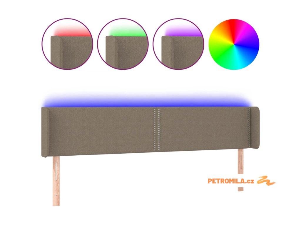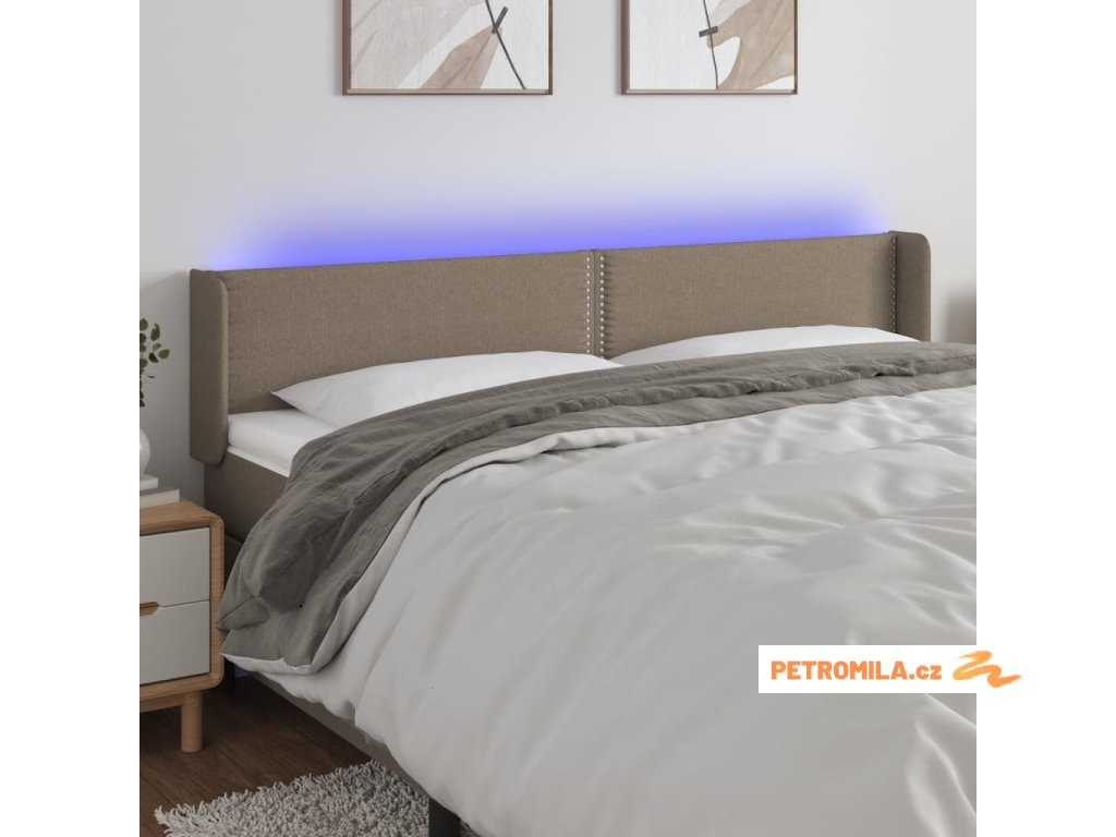 Čelo postele s LED taupe 203 x 16 x 78/88 cm textil