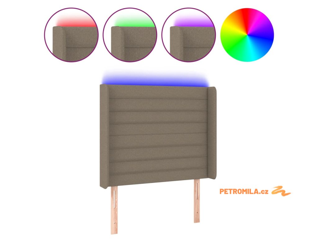Čelo postele s LED taupe 83 x 16 x 118/128 cm textil