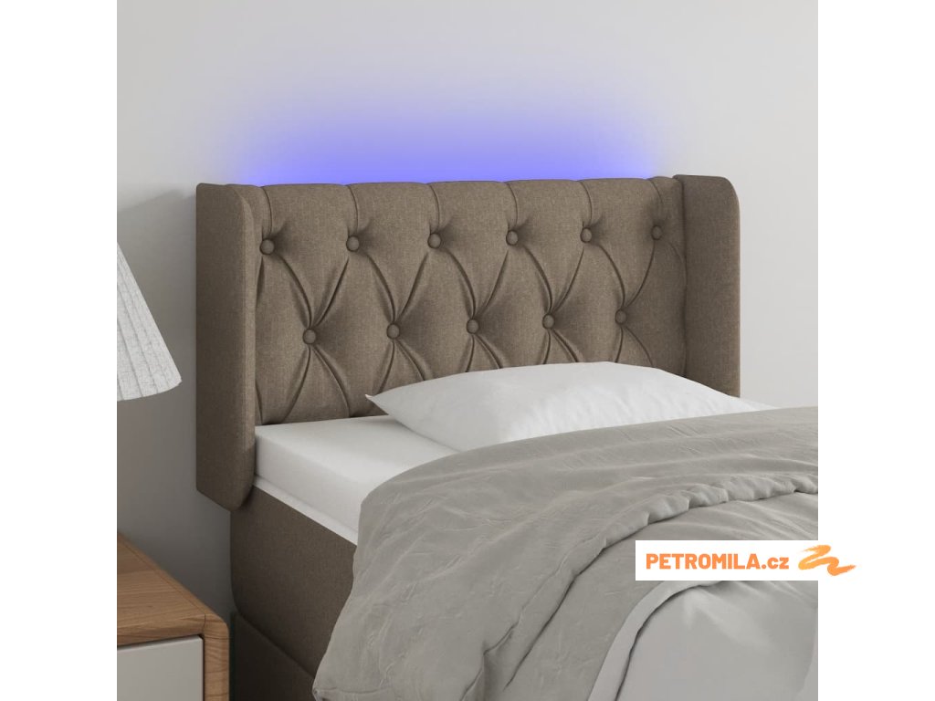 Čelo postele s LED taupe 83 x 16 x 78/88 cm textil