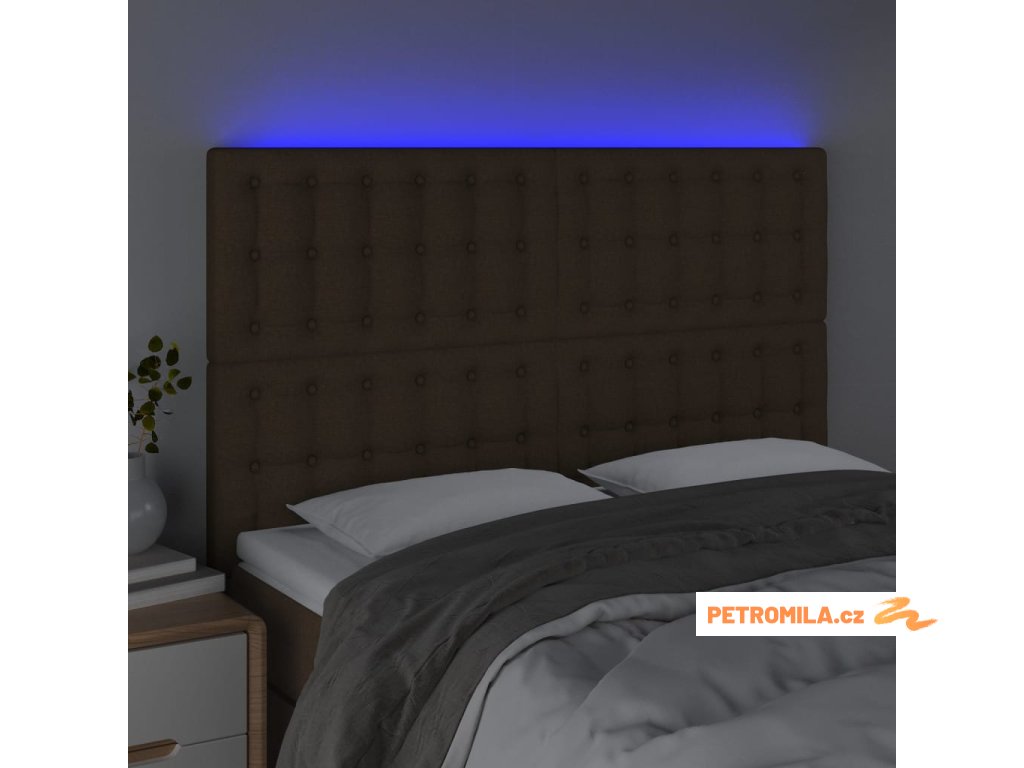 Čelo postele s LED tmavě hnědé 144x5x118/128 cm textil