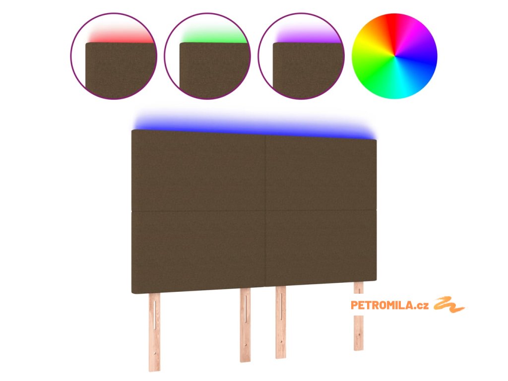 Čelo postele s LED tmavě hnědé 144x5x118/128 cm textil
