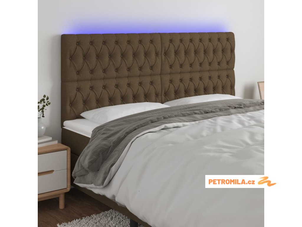 Čelo postele s LED tmavě hnědé 180x7x118/128 cm textil