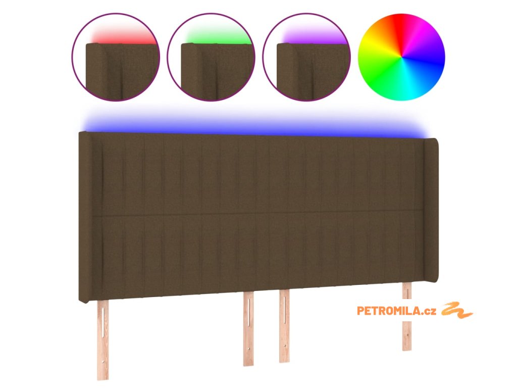 Čelo postele s LED tmavě hnědé 183 x 16 x 118/128 cm textil