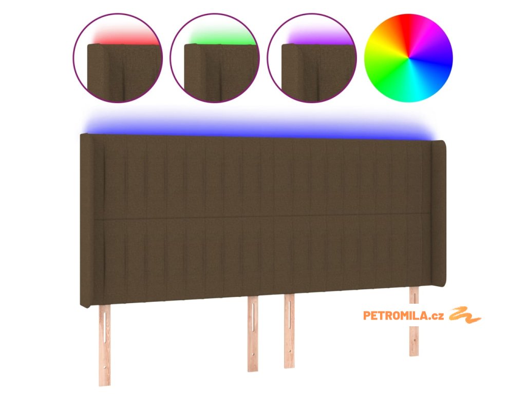 Čelo postele s LED tmavě hnědé 203 x 16 x 118/128 cm textil