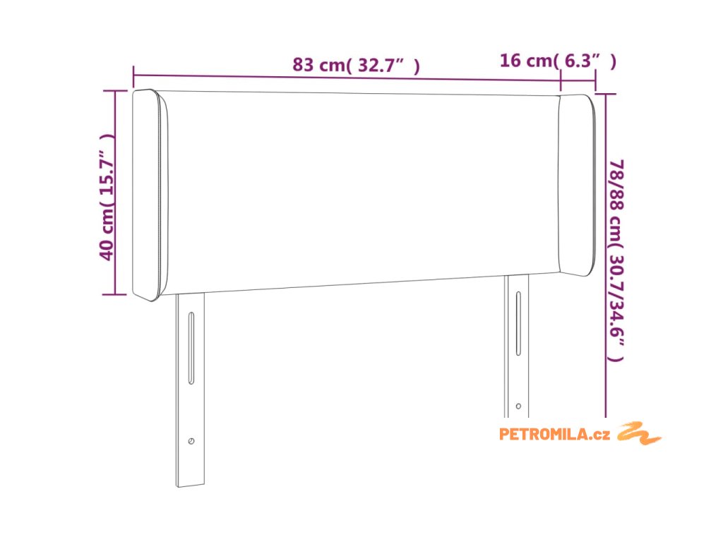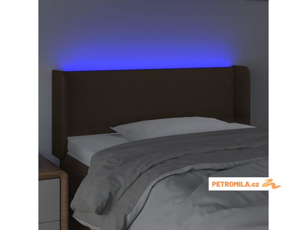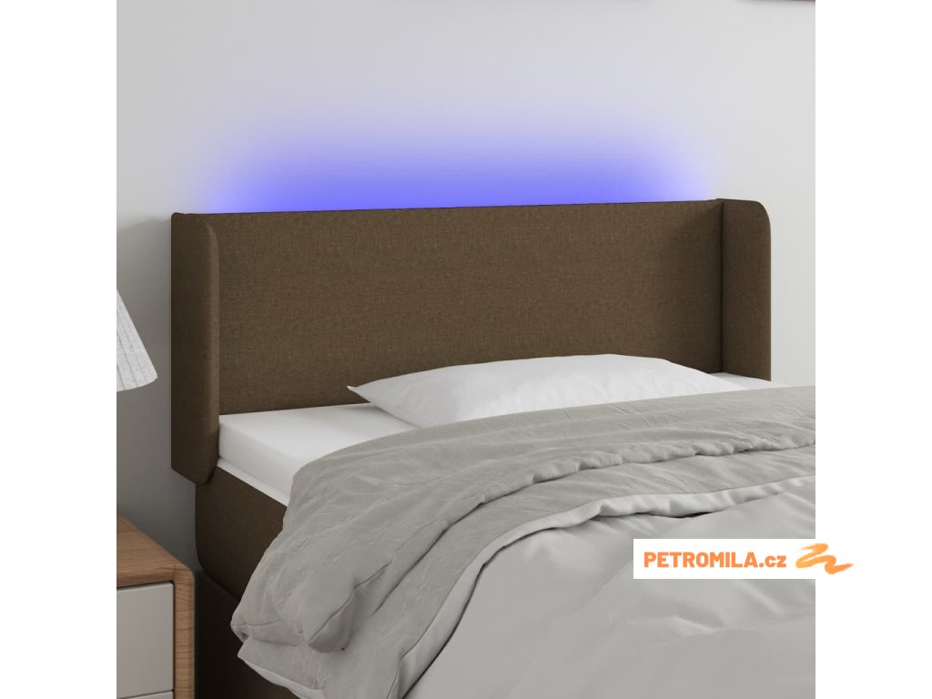 Čelo postele s LED tmavě hnědé 83 x 16 x 78/88 cm textil