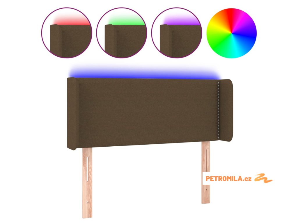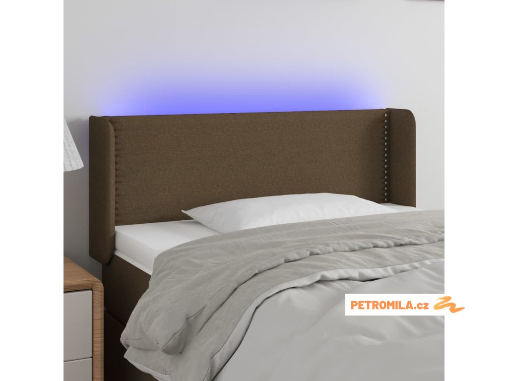 Čelo postele s LED tmavě hnědé 93 x 16 x 78/88 cm textil