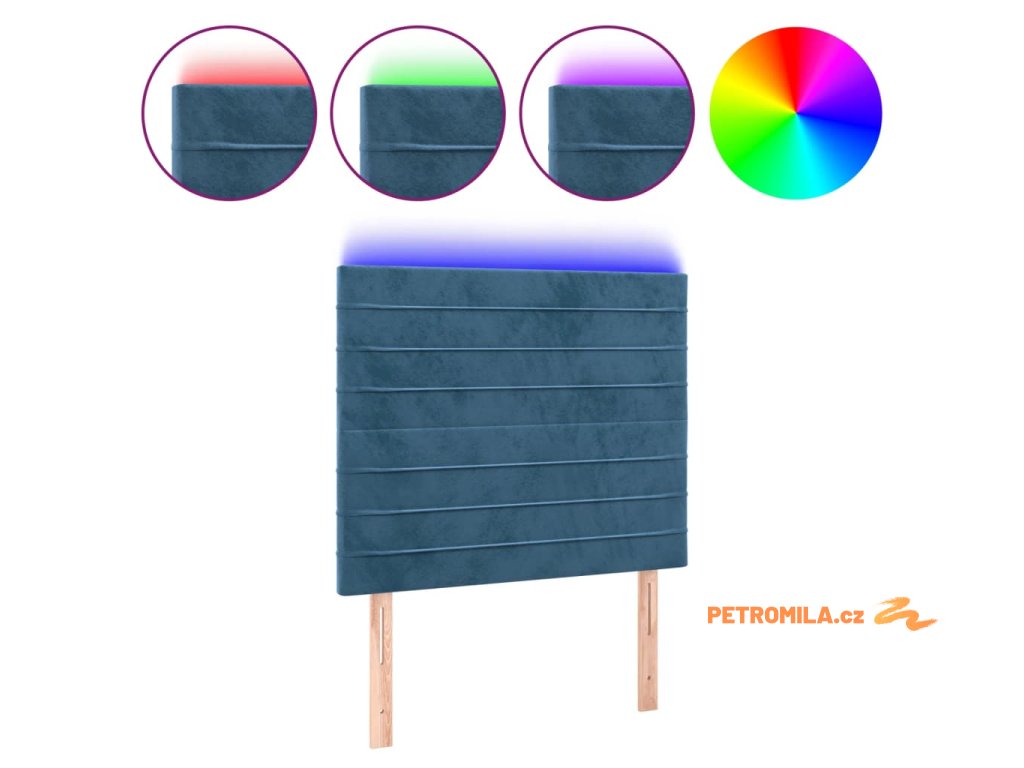 Čelo postele s LED tmavě modré 100x5x118/128 cm samet
