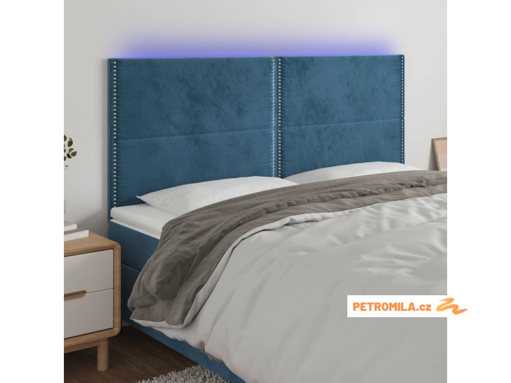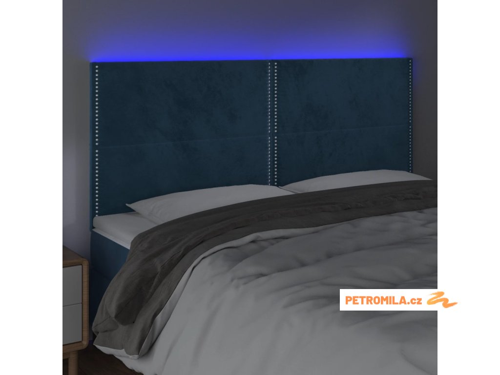 Čelo postele s LED tmavě modré 160x5x118/128 cm samet