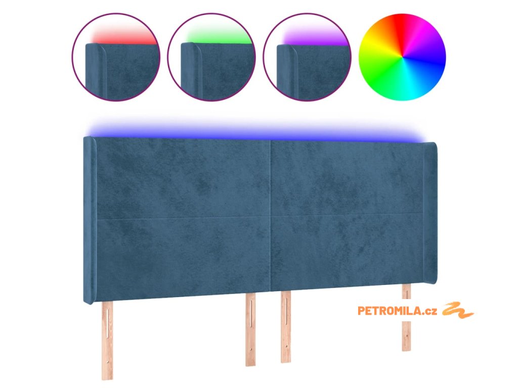 Čelo postele s LED tmavě modré 163 x 16 x 118/128 cm samet