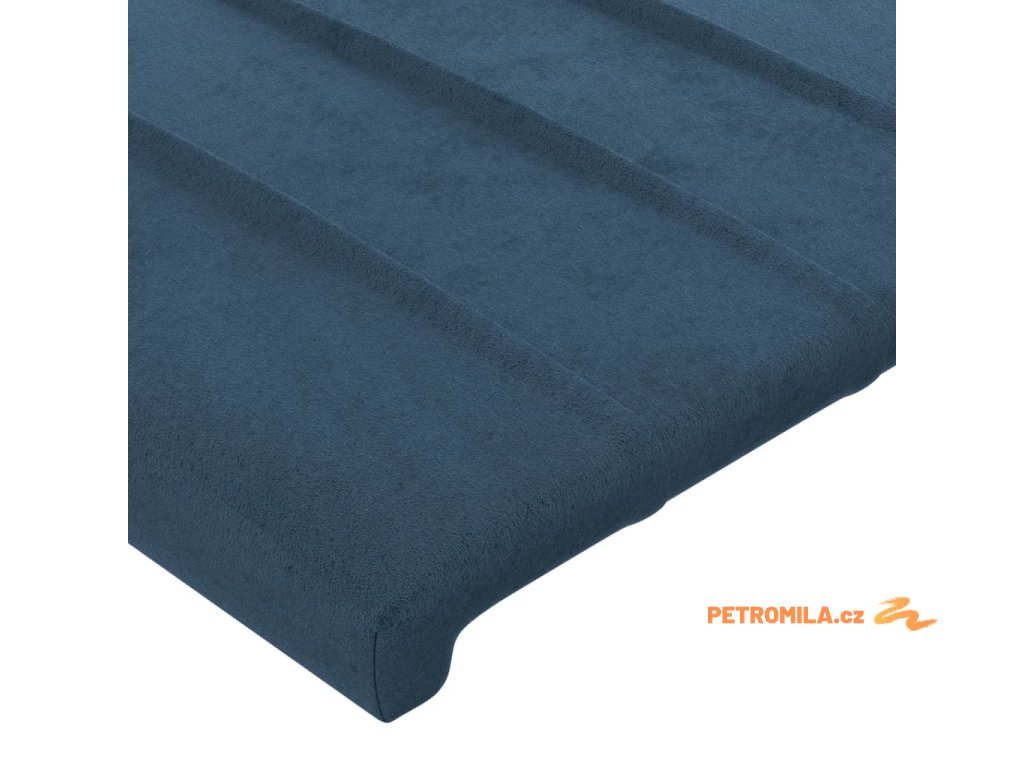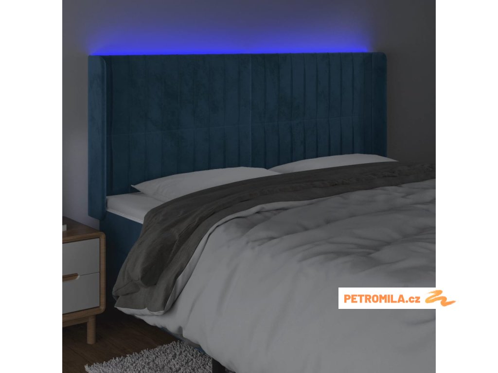 Čelo postele s LED tmavě modré 163 x 16 x 118/128 cm samet