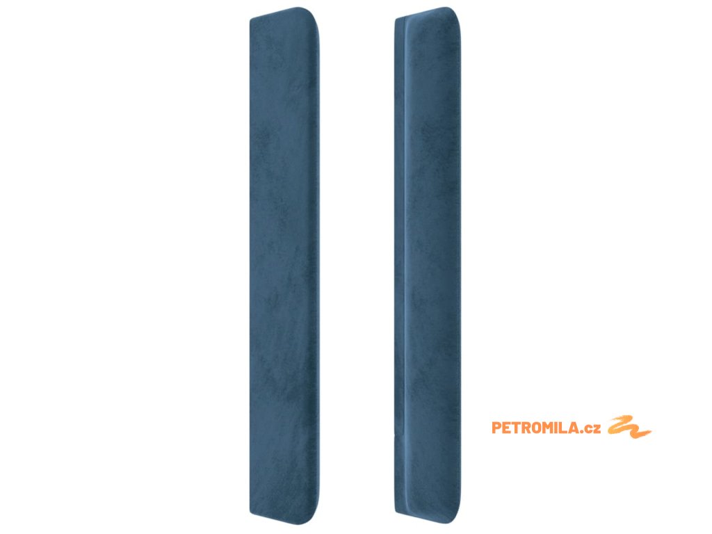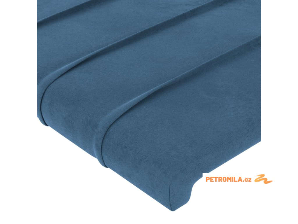 Čelo postele s LED tmavě modré 183 x 16 x 118/128 cm samet