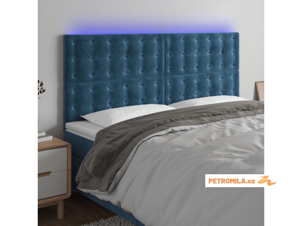 Čelo postele s LED tmavě modré 200x5x118/128 cm samet