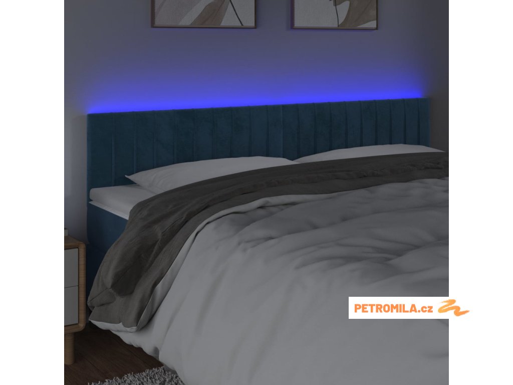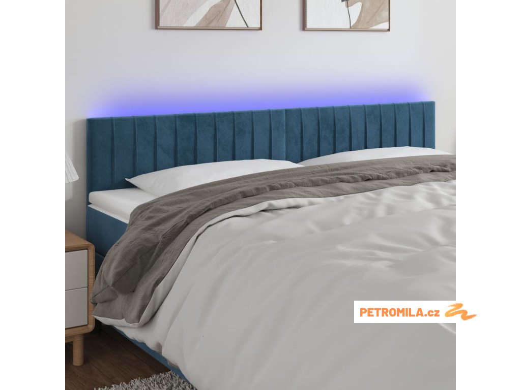 Čelo postele s LED tmavě modré 200x5x78/88 cm samet