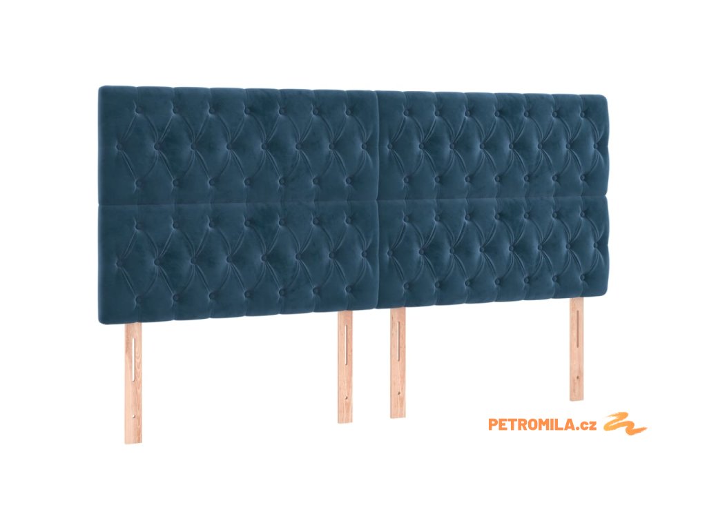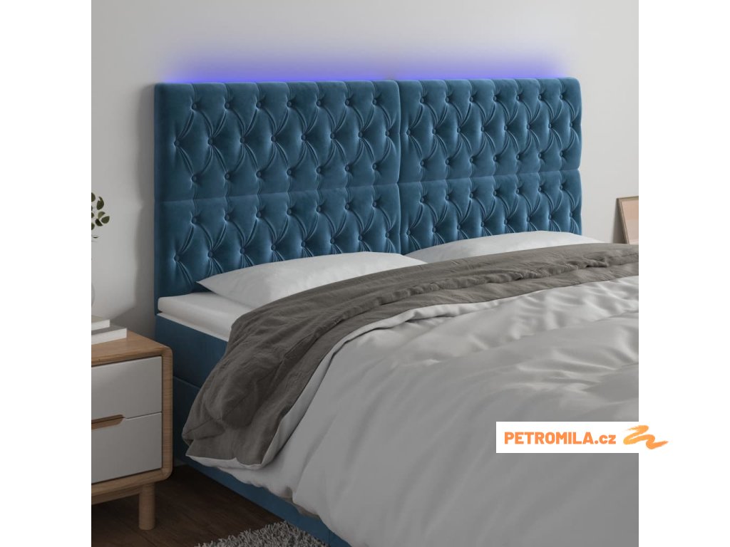 Čelo postele s LED tmavě modré 200x7x118/128 cm samet