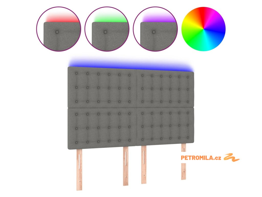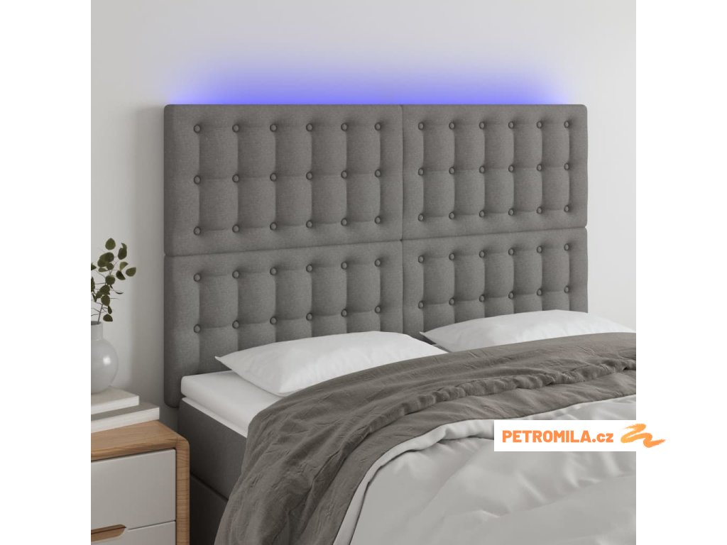 Čelo postele s LED tmavě šedé 144x5x118/128 cm textil