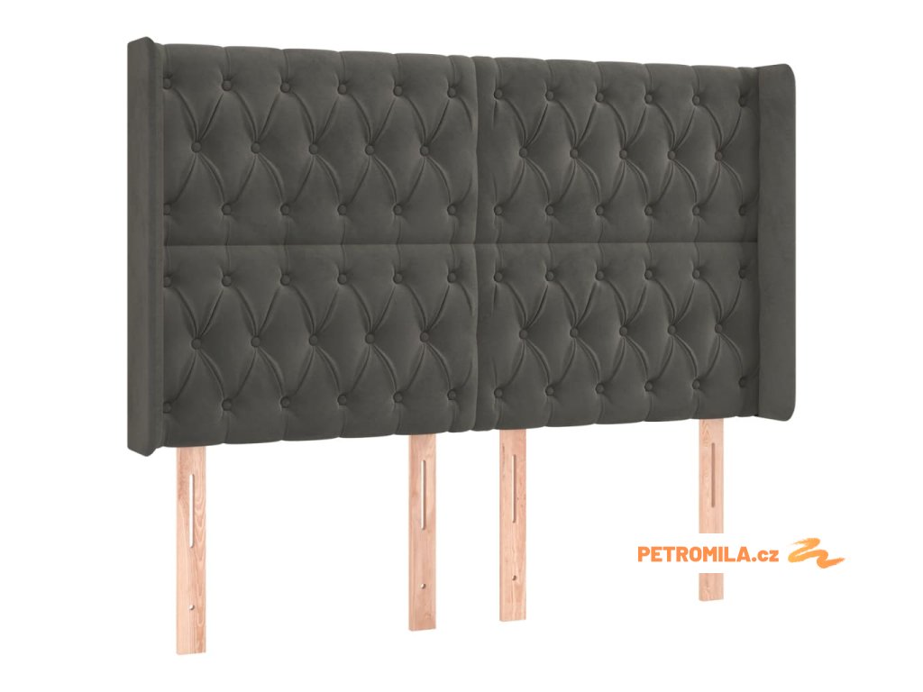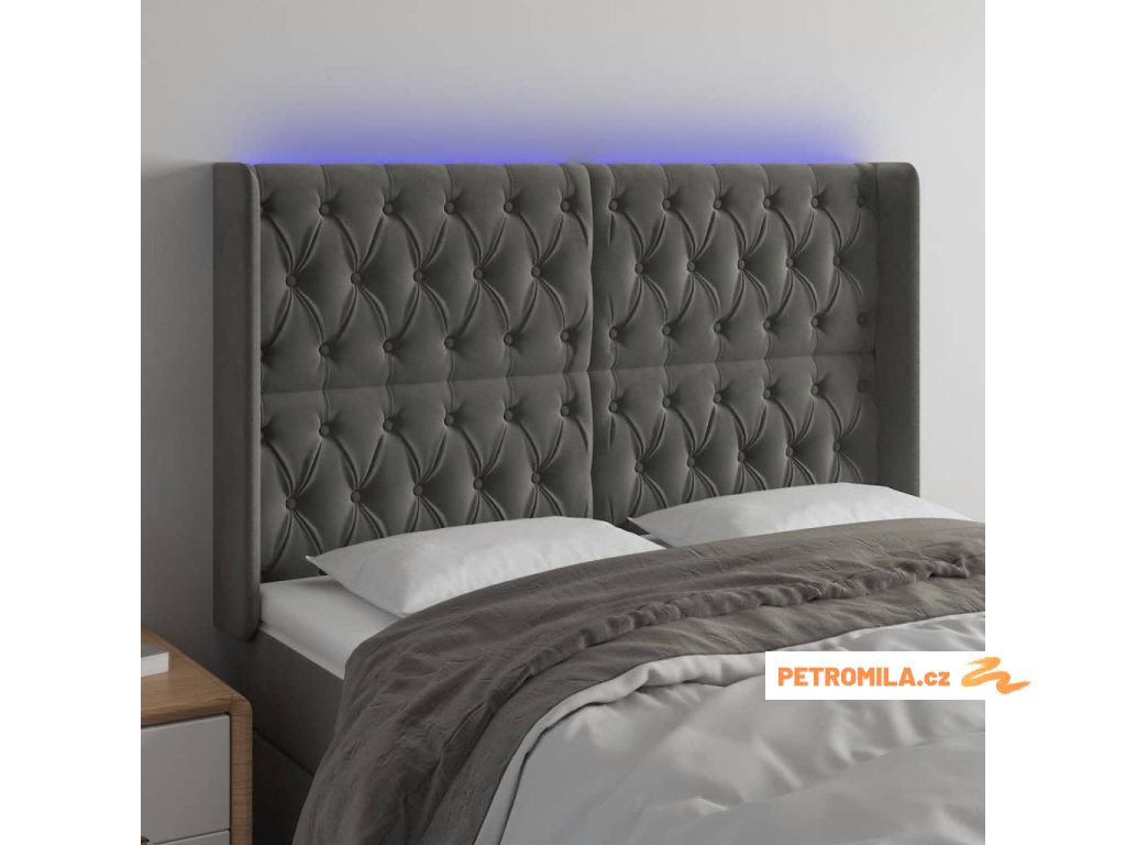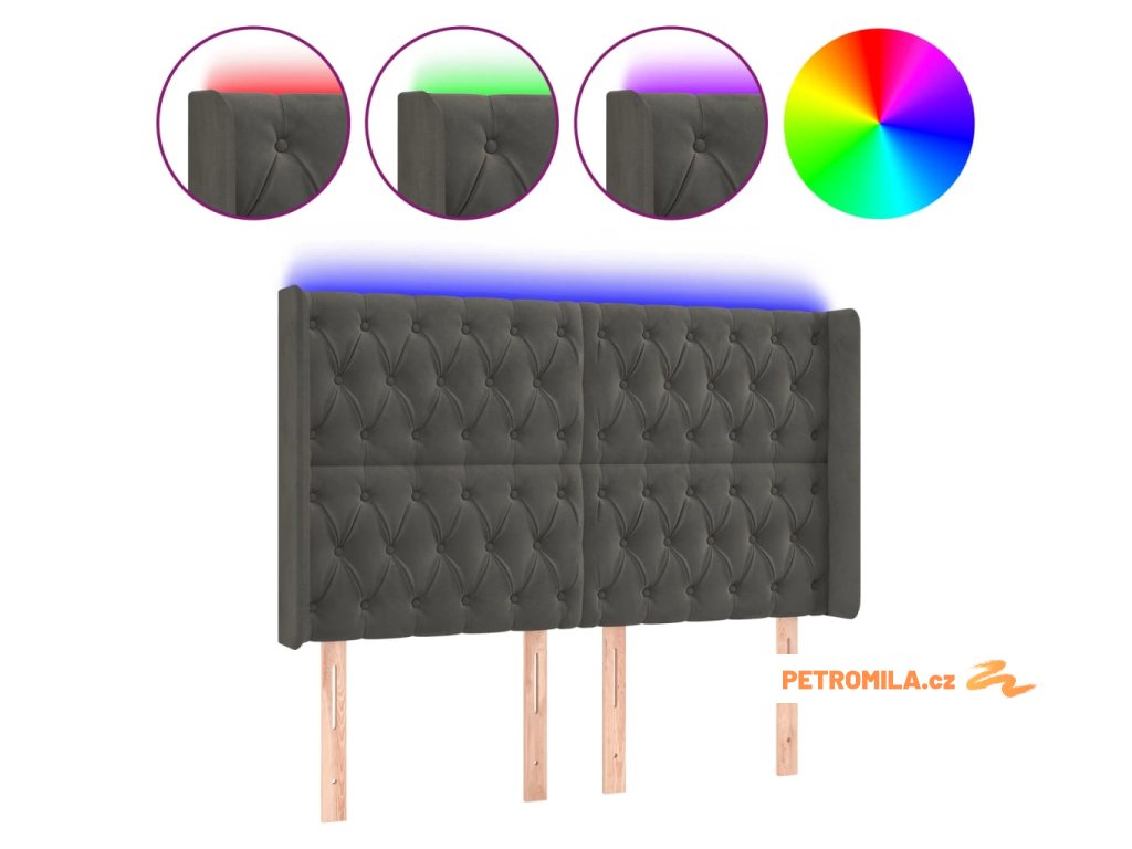 Čelo postele s LED tmavě šedé 147 x 16 x 118/128 cm samet