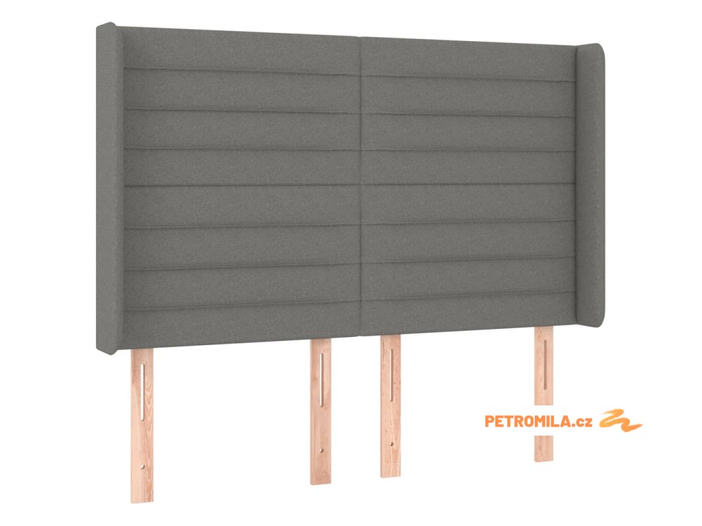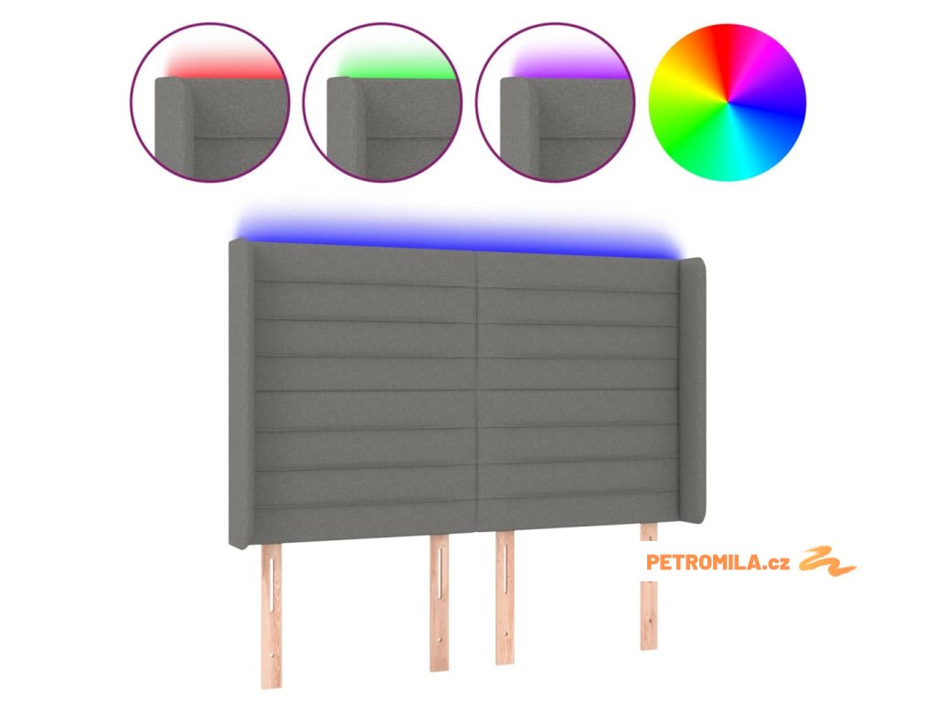 Čelo postele s LED tmavě šedé 147 x 16 x 118/128 cm textil