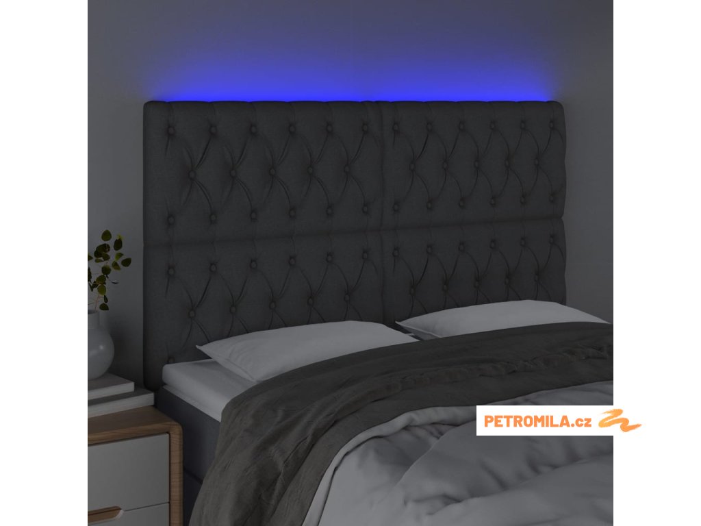 Čelo postele s LED tmavě šedé 160x7x118/128 cm textil