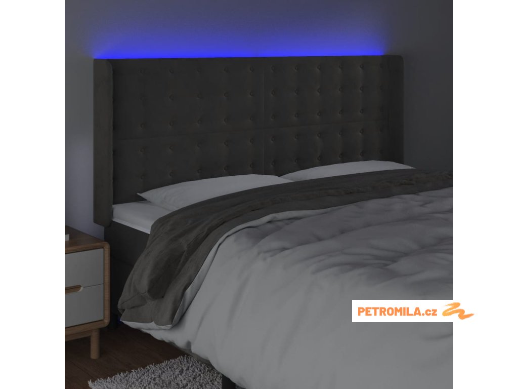 Čelo postele s LED tmavě šedé 163 x 16 x 118/128 cm samet
