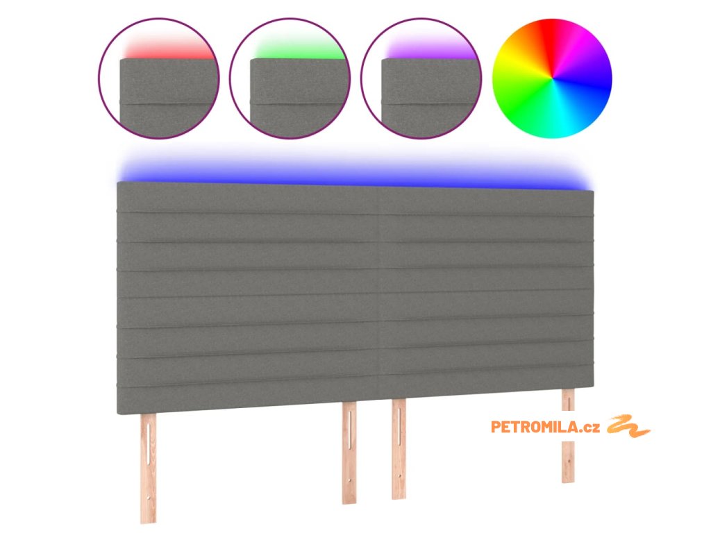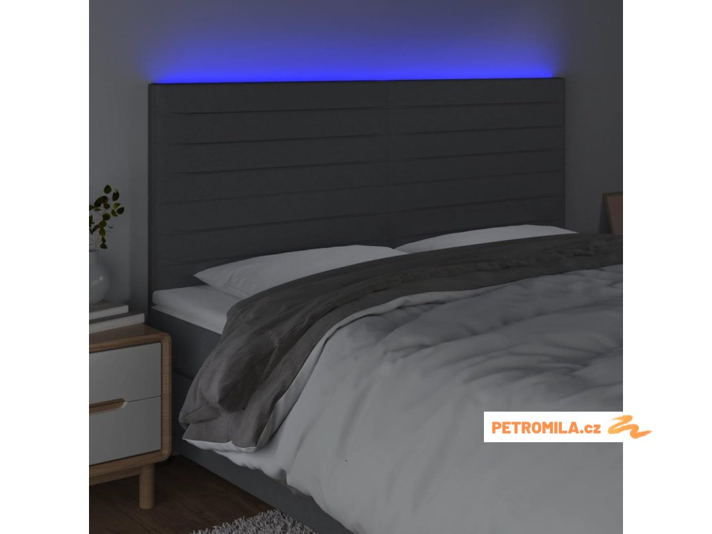 Čelo postele s LED tmavě šedé 180x5x118/128 cm textil