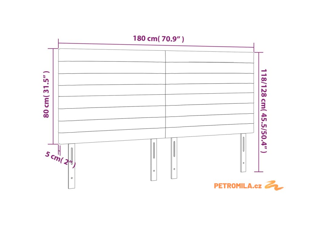 - Rozměry: 180 x 5 x 118/128 cm (Š x H x V)