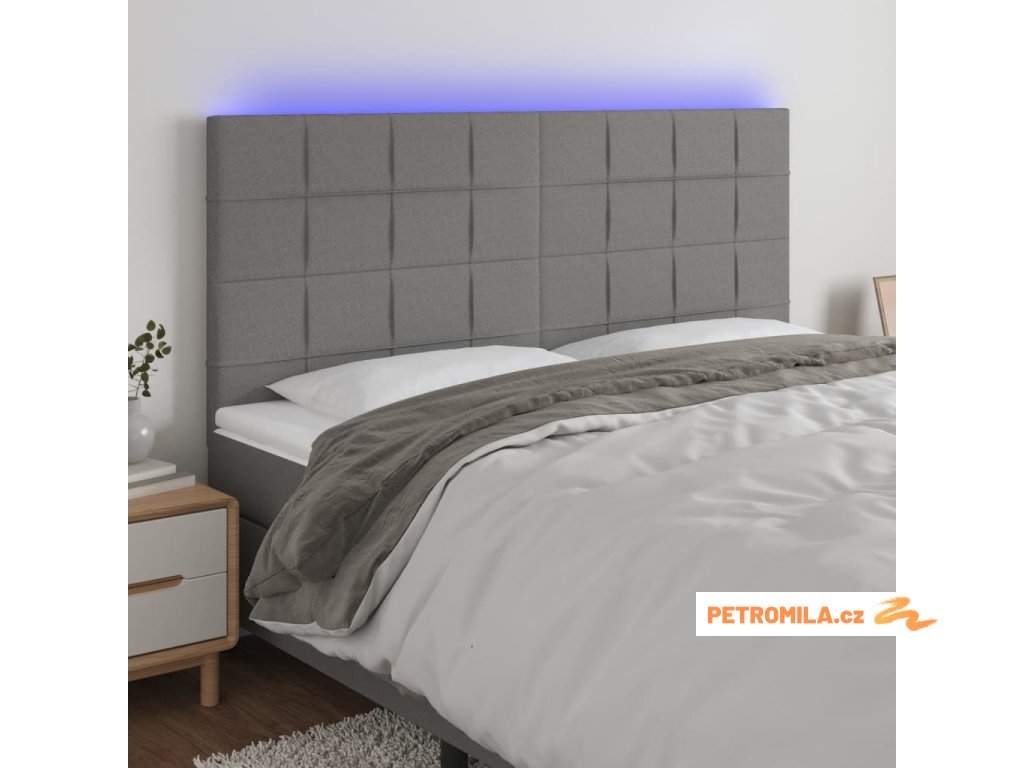 Čelo postele s LED tmavě šedé 180x5x118/128 cm textil
