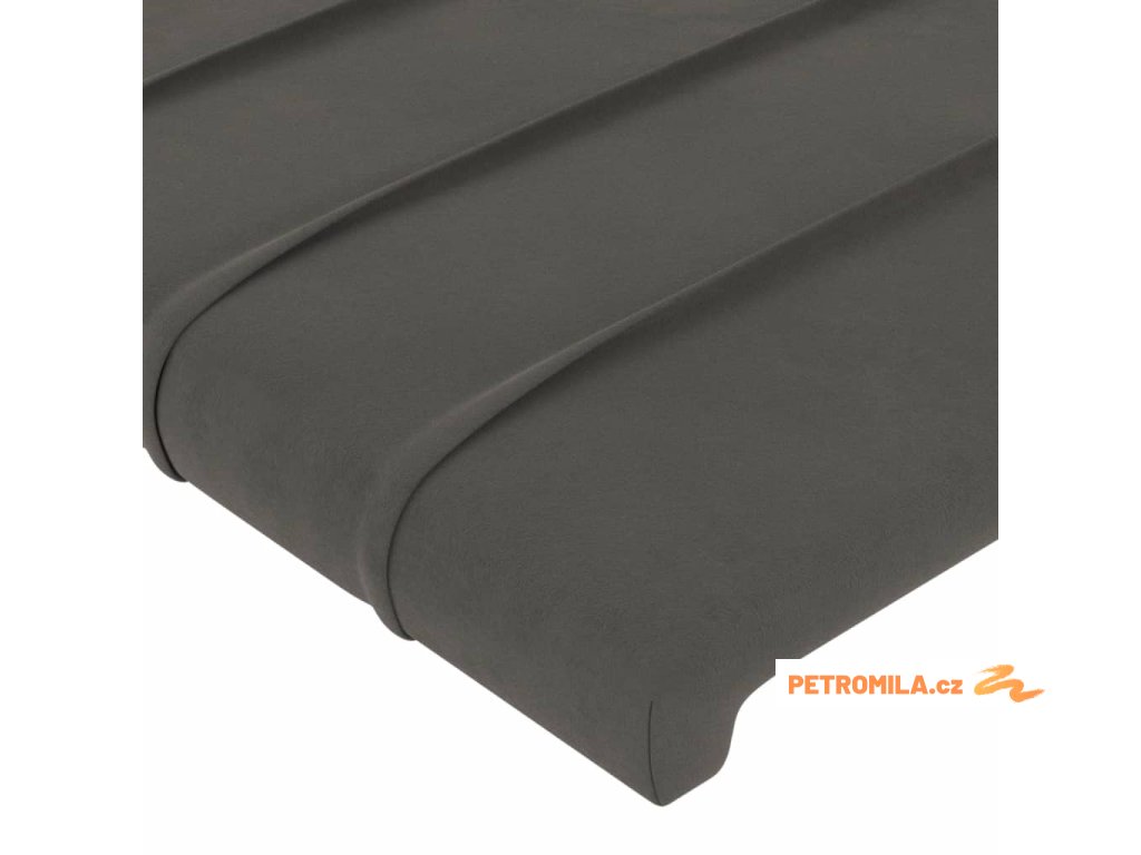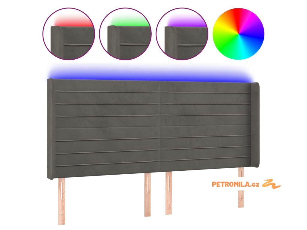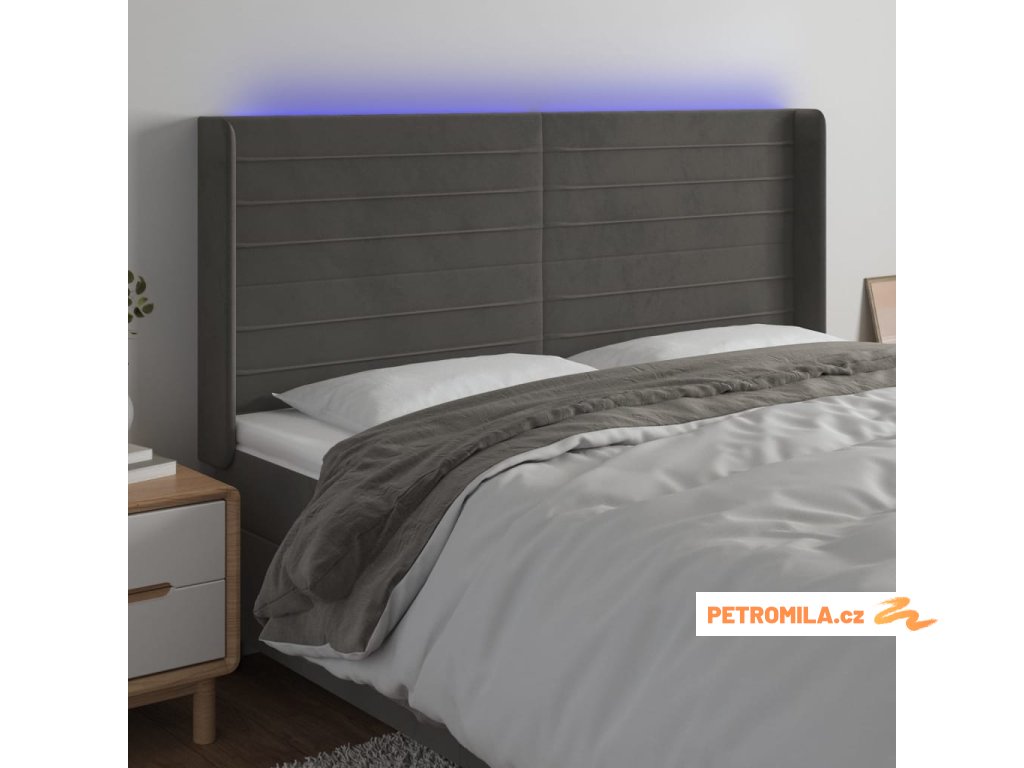 Čelo postele s LED tmavě šedé 183 x 16 x 118/128 cm samet