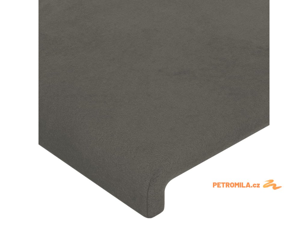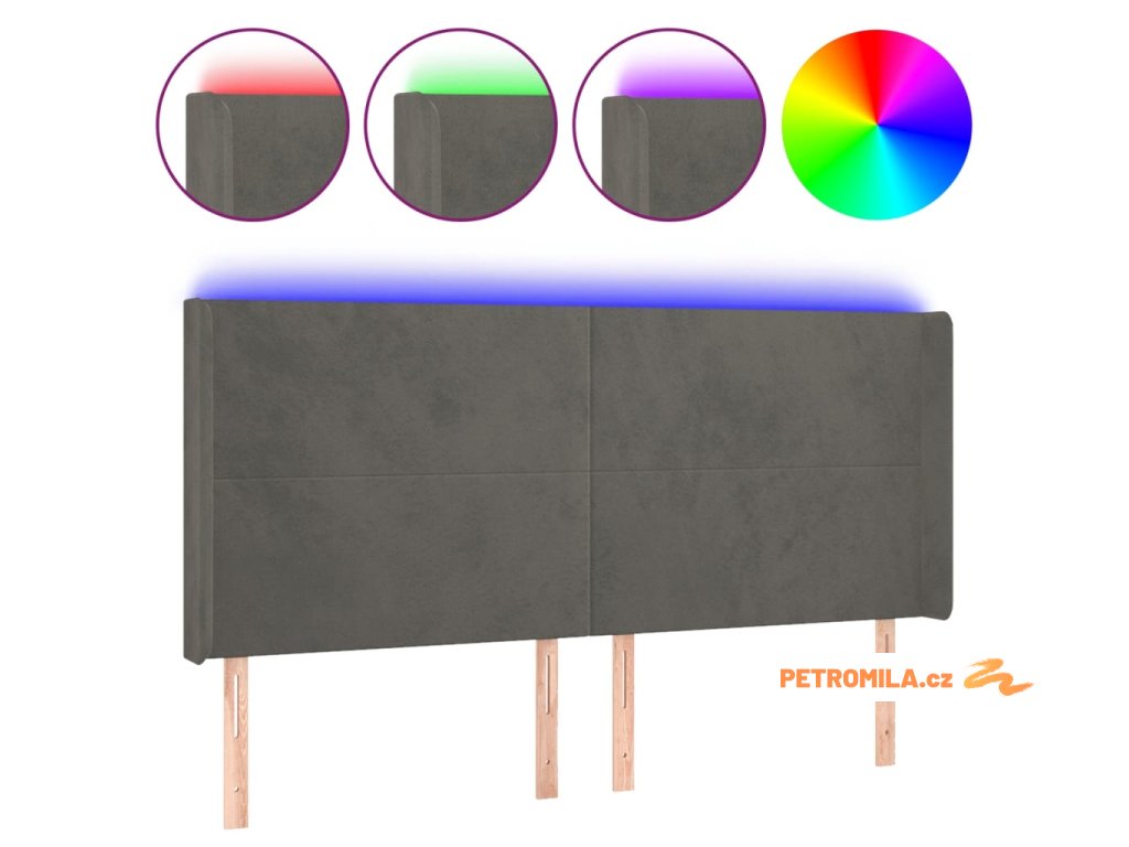 Čelo postele s LED tmavě šedé 183 x 16 x 118/128 cm samet