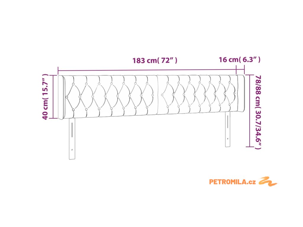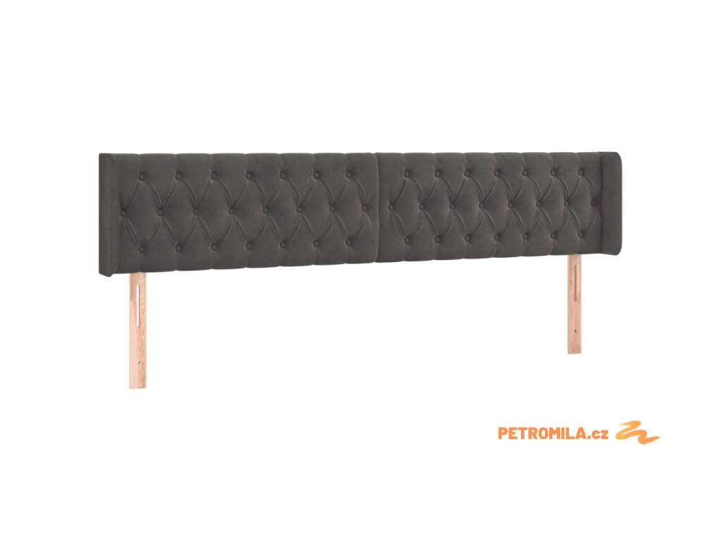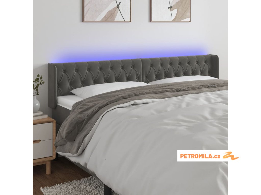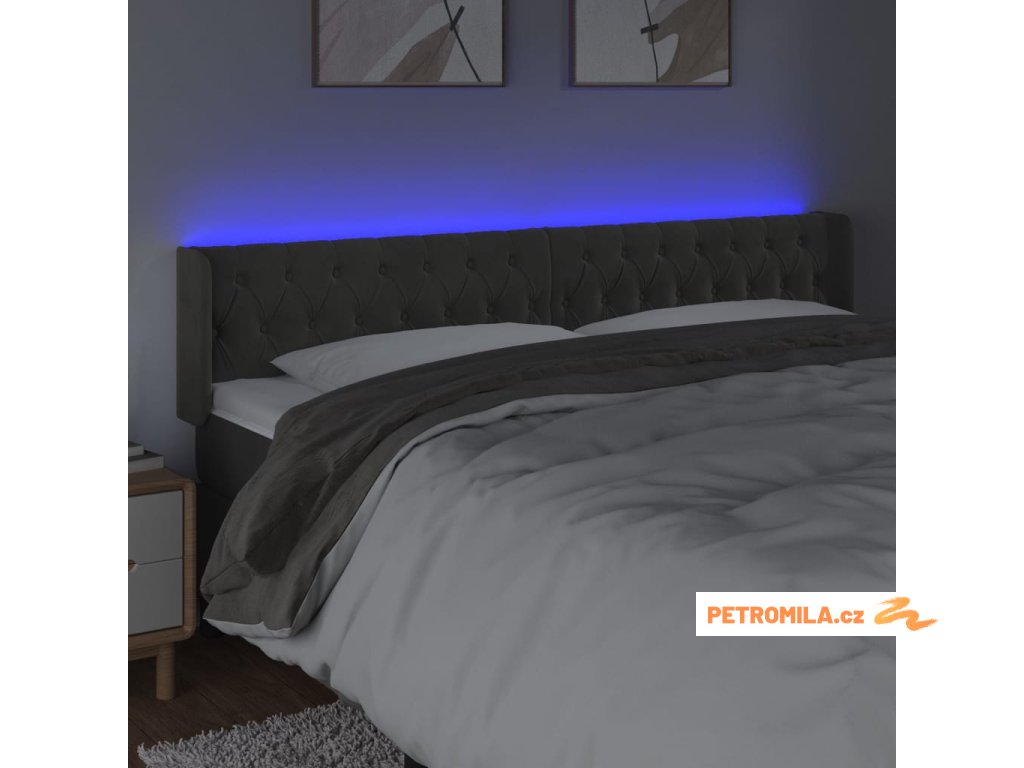 Čelo postele s LED tmavě šedé 183 x 16 x 78/88 cm samet