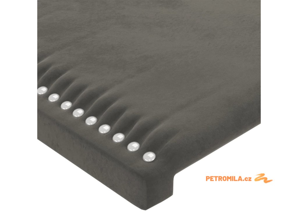 Čelo postele s LED tmavě šedé 203 x 16 x 118/128 cm samet