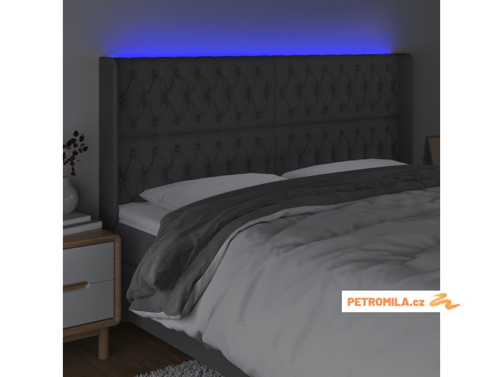 Čelo postele s LED tmavě šedé 203 x 16 x 118/128 cm textil